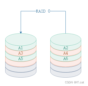 RAID 0只是单纯的提高速率,数据进行读写时会进行分片,同时往RAID 0中的两块盘上进行传输,所以读写速率会大大提高,但是相对的在传输过程中,如果一块盘失效,那么将影响到所有数据