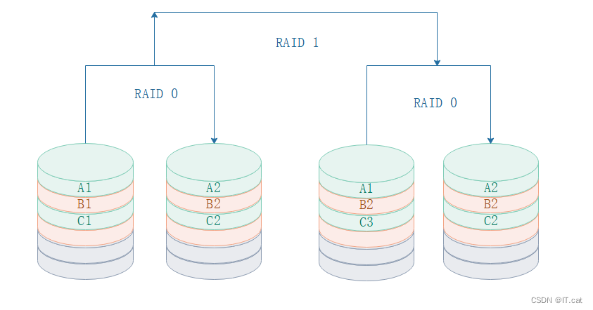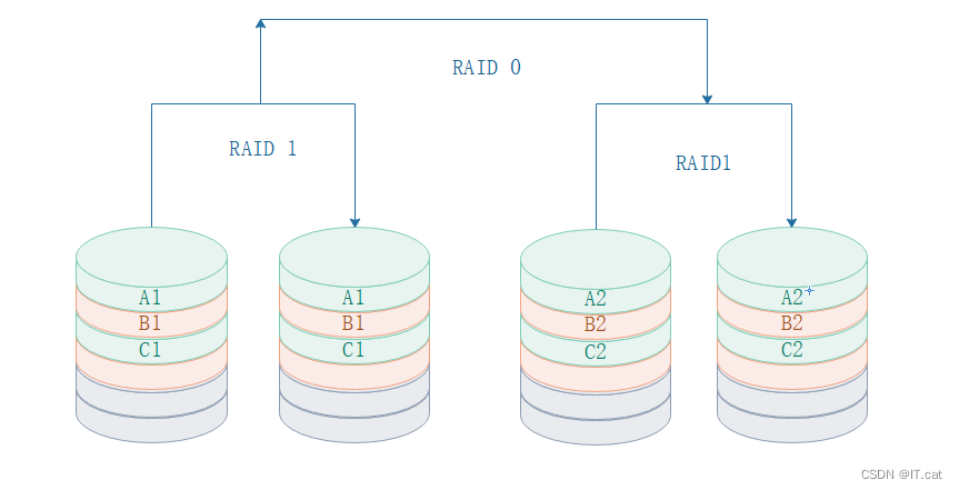 1.7、RAID 0+1 (先做条带,再做镜像)