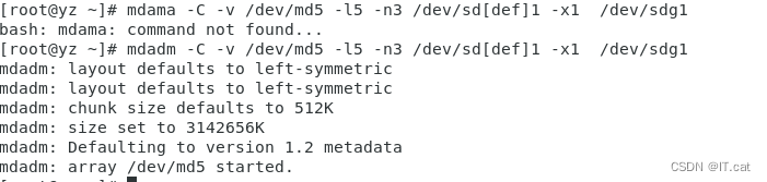 mdadm -Cv /dev/md1 -l1 -n2 /dev/sd[fg]1 ##创建RAID 1