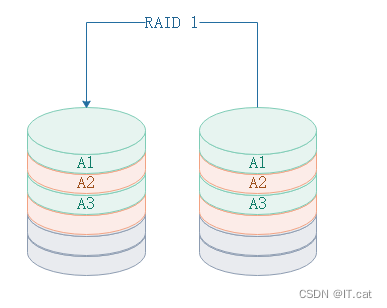 RAID 1 (镜像存储)通过磁盘数据镜像实现数据冗余,在成对的独立磁盘上残生互为备份的数据