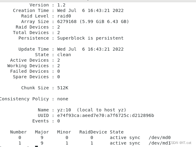 mdadm -D /dev/md0 ##查看RAID 0详细信息