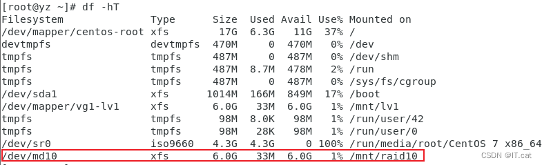 mount /dev/md10 /mnt/raid10 ##进行挂载