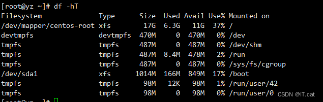 df -hT