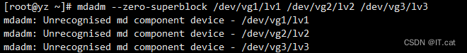 mdadm --zero-superblock /dev/vg1/lv1 /dev/vg2/lv2 /dev/vg3/lv3 ##很关键!!