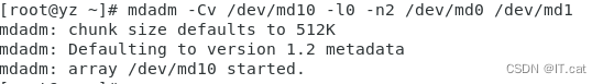 mdadm -Cv /dev/md10 -l0 -n2 /dev/md0 /dev/md1 ##将RAID 0和1组合创建RAID 10