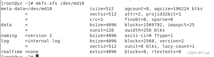 mkfs.xfs /dev/md10 ##对RAID10进行格式化