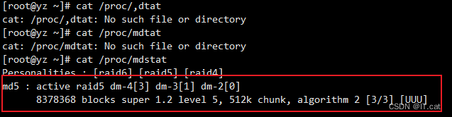 cat /proc/mdstat ##查看磁盘阵列信息