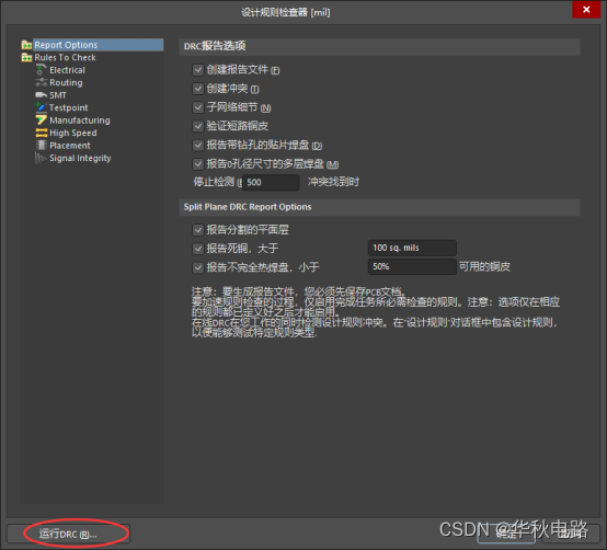 DRC检查也叫设计规则检查,是PCB设计软件(EDA)中用于在PCB Layout过程中实时检查和发现与预定设计规范不符的设计。用于保证设计正确性和满足常规设计规范为出发点,是PCB设计中不可缺少的部分。基于DRC的作用和目的,它的检查项目一般不超过100个检查细项。