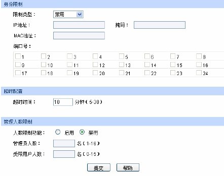 管理员人数:填写可同时登录交换机Web页面的管理员总数。