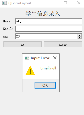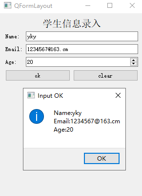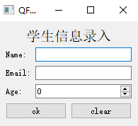 void addRow(QLayout *layout)该方法直接在末尾添加一个横跨两列的widget或layout,比如在末尾添加一个含有ok和clear按钮的layout。