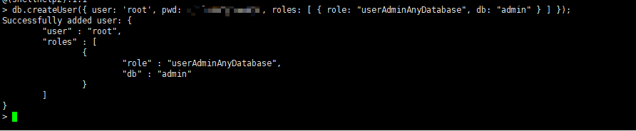 db.createUser({ user: 'root', pwd: 'root', roles: [ { role: "userAdminAnyDatabase", db: "admin" } ] });