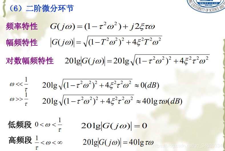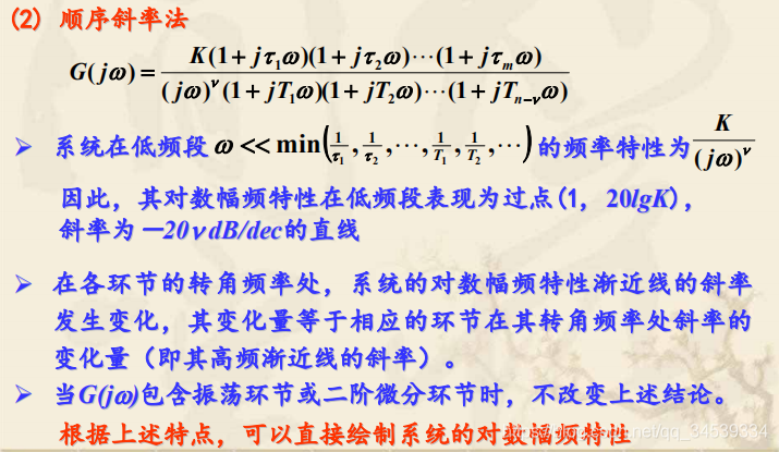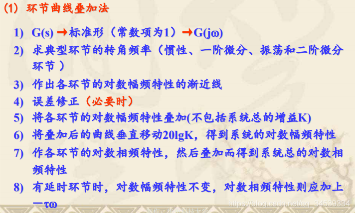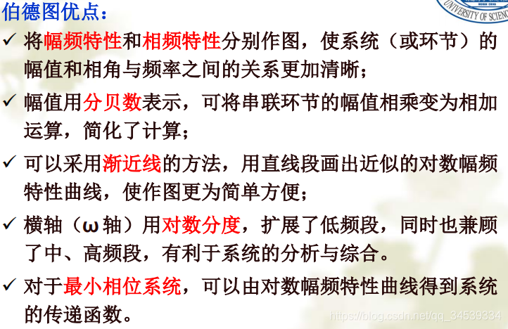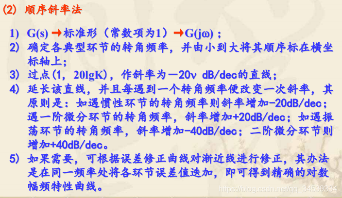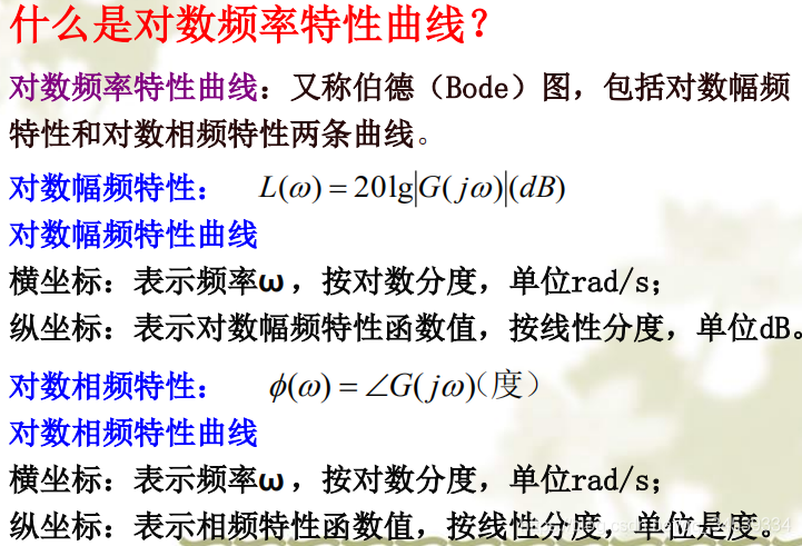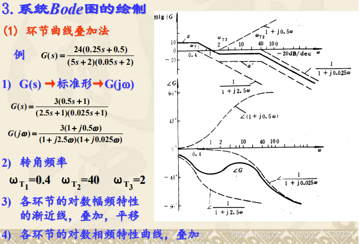 对数频率特性曲线的绘制1. 什么是对数频率特性曲线 2. 典型环节的对数频率特性曲线 3. 系统Bode图的绘制环节曲线叠加法 顺序斜率法 版权声明:本文为qq_34539334原创文章,遵循CC 4.0 BY-SA版权协议,转载请附上原文出处链接和本声明。原文链接:https://blog.csdn.net/qq_34539334/article/details/119721506
