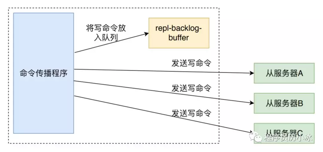 从客户端用于主从复制,主节点会为每个从节点单独建立一条连接用于命令复制,默认配置为 client-output-buffer-limit slave 256mb 64mb 60。当主从节点之间网络延迟较高或主节点挂载大量从节点时这部分内存消耗将占用很大一部分,建议主节点挂载的从节点不要多于 2 个,主从节点不要部署在较差的网络环境下,如异地跨机房环境,防止复制客户端连接缓慢造成溢出。与主从复制相关的一共有两类缓冲区,一个是从客户端输出缓冲区,另外一个是下面会介绍到的复制积压缓冲区。