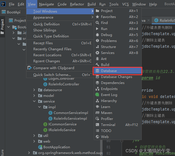 步骤一:打开database,如果之前没配置过会提示你创建
