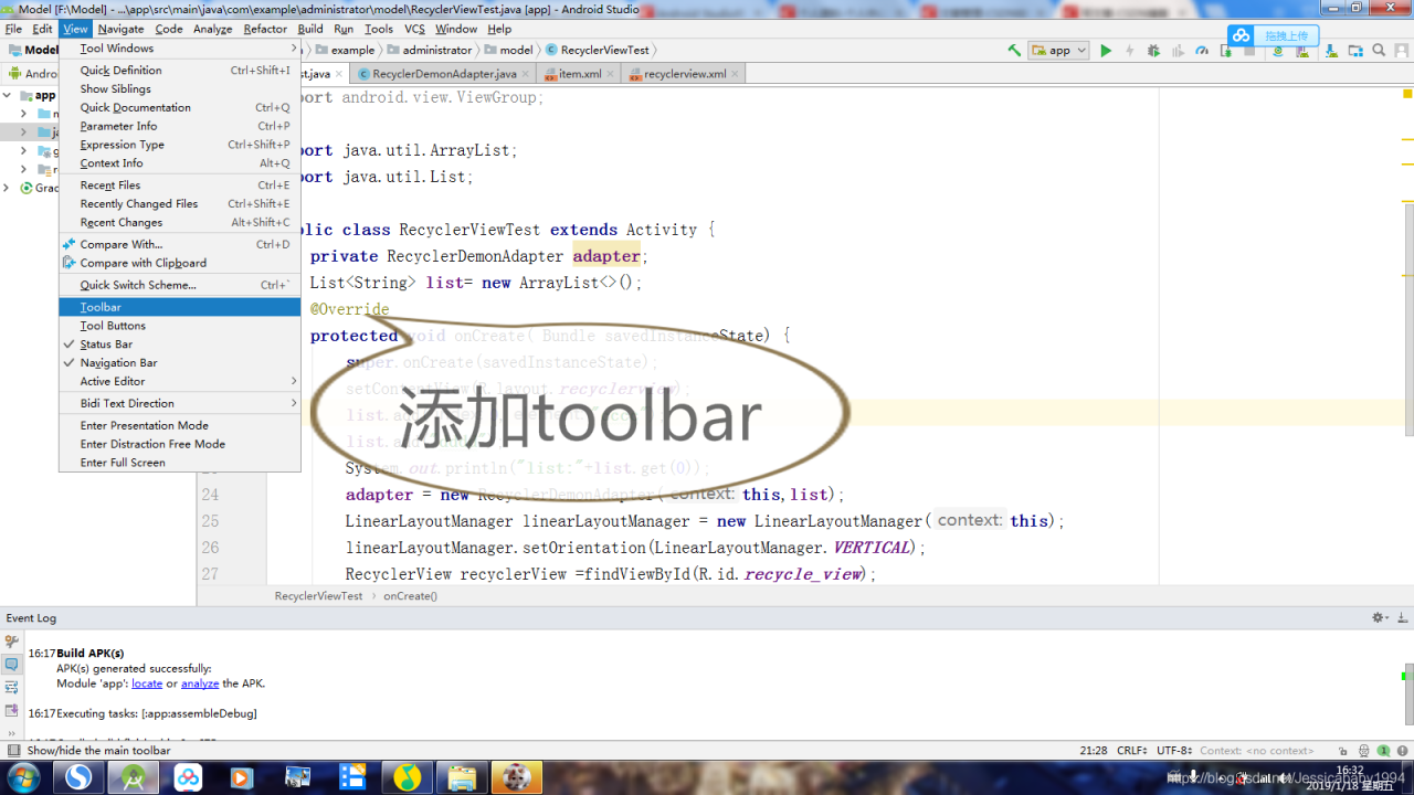Android Studio的Logcat/terminal/build等窗口没有了怎么调出版权声明:本文为Jessicababy1994原创文章,遵循CC 4.0 BY-SA版权协议,转载请附上原文出处链接和本声明。原文链接:https://blog.csdn.net/Jessicababy1994/article/details/86542821