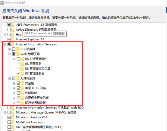 3. 开始修改IIS了,我是这样勾上的,有可能比较多。