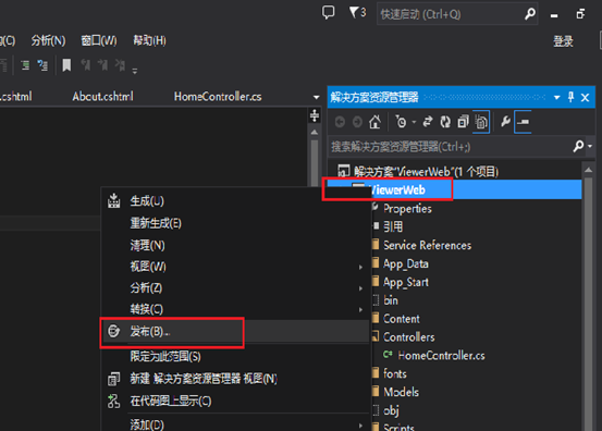 2.发布项目:右键【ViewerWeb】,选择【发布】