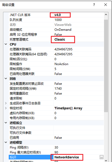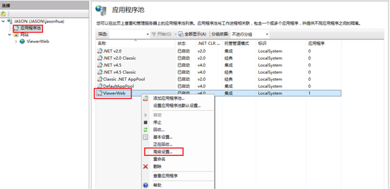 点击应用程序池,在添加的网站上进行高级设置。
