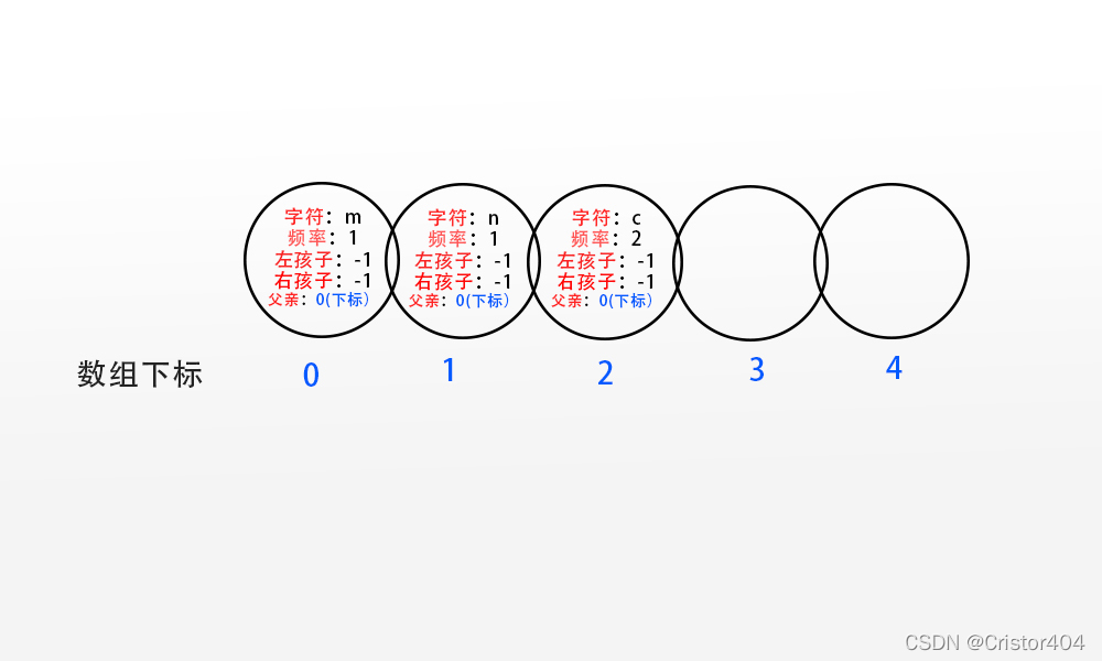 我们可以构建出这样一颗Huffman树,首先我们来创建一个树结点的结构体,每一个结点都存有: