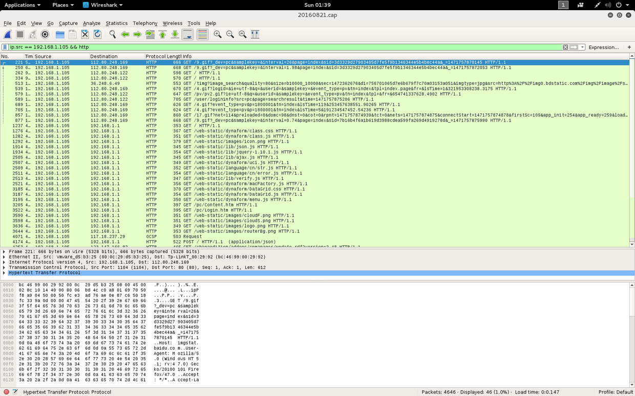 6.我们也可以使用tcpdump或Wireshark工具截获所有流量。