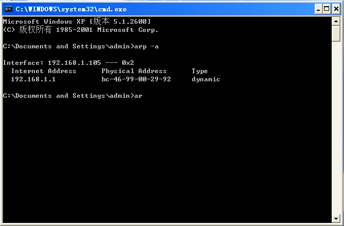 1.ARP欺骗攻击之前,受害者主机的ARP缓存如下图(0x7接口);