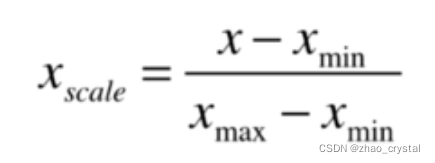 (1)最值归一化(MinMaxScaler):把所有的数据映射到0-1之间。适用于分布有明显边界的情况(如:考试成绩)