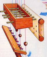 最开始编织机编织图案相当费事。所有的绸布都是用经线(纵向线)和纬线(横向线)编织而成。若要织出花样,织工们必须细心地按照预先设计的图案,在适当位置“提”起一部分经线,以便让滑梭牵引着不同颜色的纬线通过。机器当然不可能自己“想”到该在何处提线,只能靠人手“提”起一根又一根经线,不厌其烦地重复这种操作。
