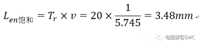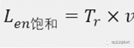 Driver pluse在quiteline近端造成一个较长的耦合信号,该信号开始于0时刻,持续时间为2Td,近端串扰信号随着驱动器上升边沿逐步上升,当信号前沿传输了一定长度后,近端的电流将达到一个稳定值不再增加,该长度称为饱和长度。传输线饱和长度Len为: