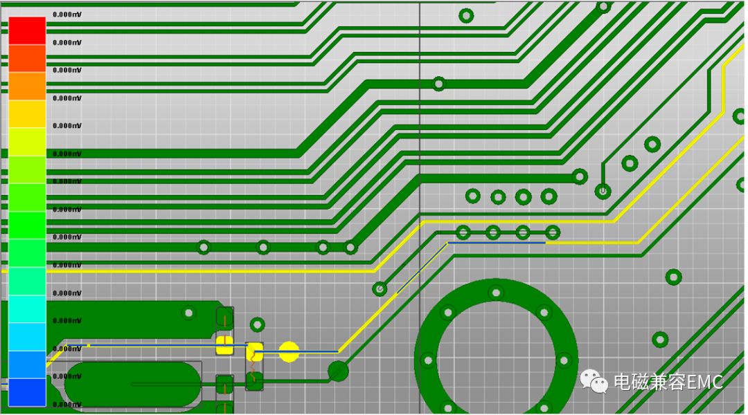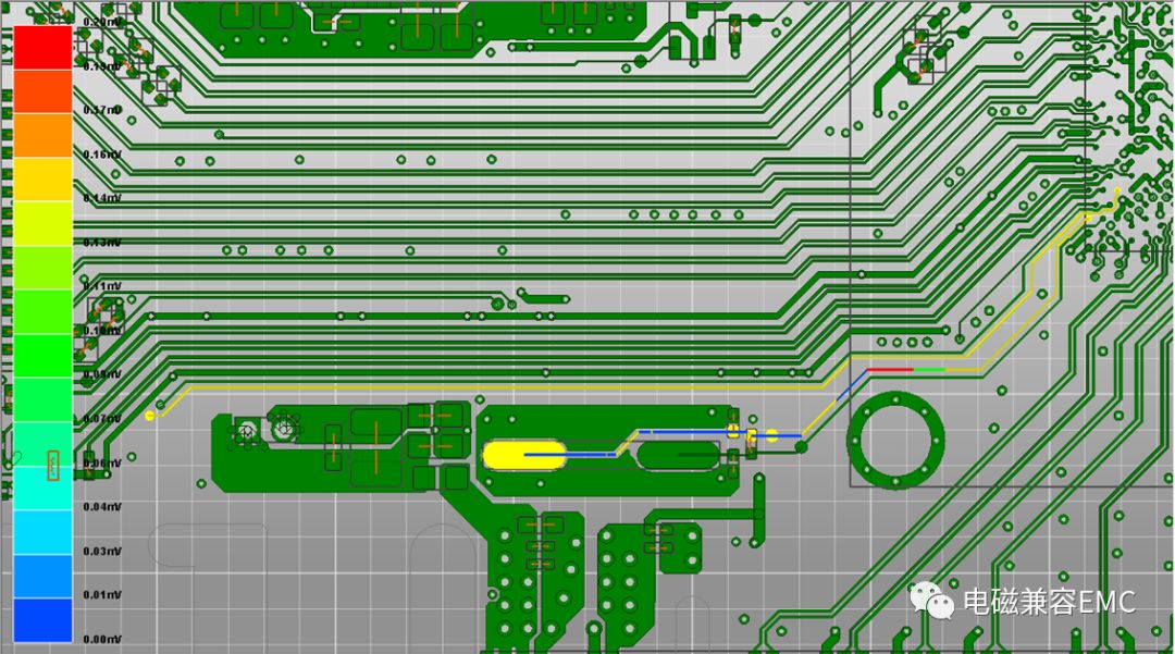 因为走线整体布局已经确定,这里选择在线间加部分伴随GND走线,当优化后再次进行仿真后,可以看出,原先位置的电平已经降下来了。