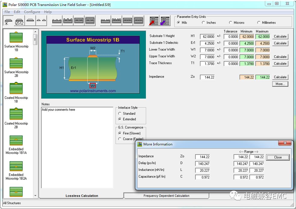 Fig10.同样参数下Polar计算出的阻抗和时延结果