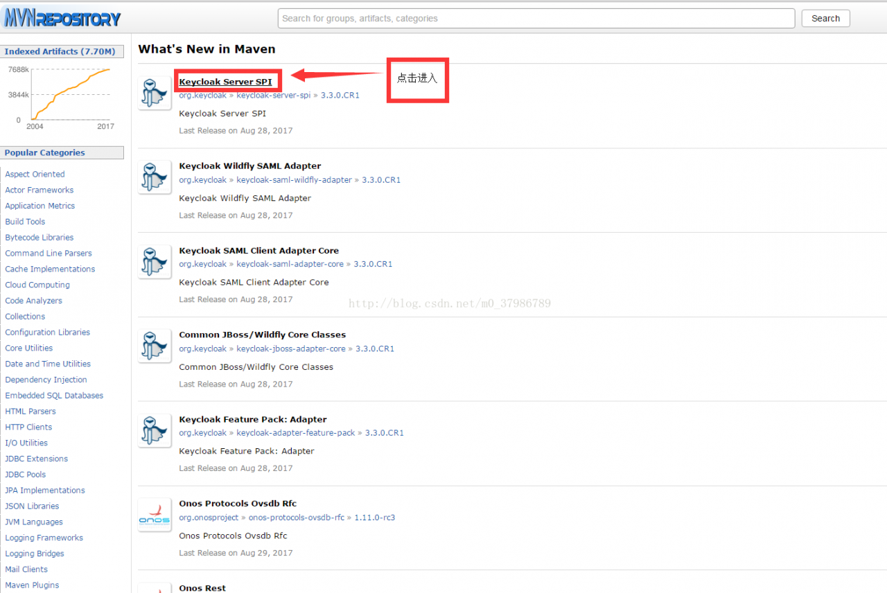 2、将我们需要的jar包名字输入查找:通常来讲,我们会选择点击量最多的那个就是的啦。完了按照我下面的截图一步步操作就行啦。