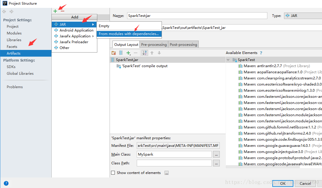 由于我们的jar包实在spark 上运行的,所可以删除其他不需要的依赖包,如下图所示,删除其他不需要的包,只留下红色矩形中的两个。