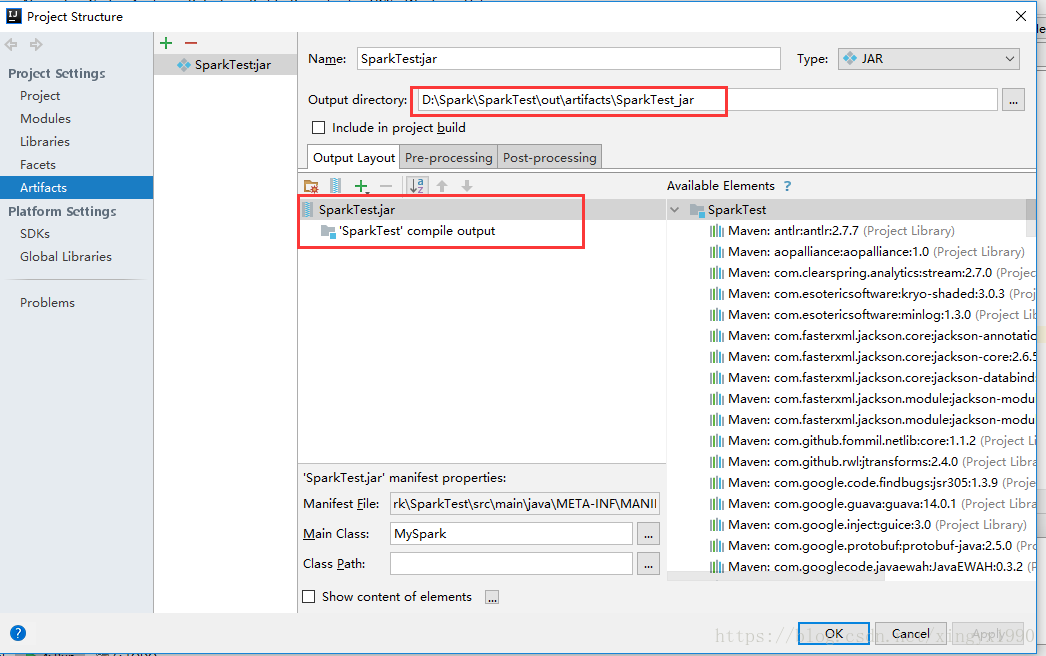 注意:output directory 的路径。此处是你导出 jar 的路径