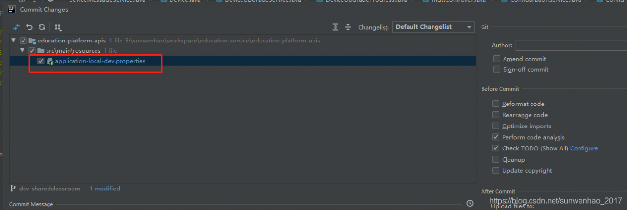 背景:有时候我们使用idea提交代码不需要提交一些用于本地测试的一些代码,类如下面的配置信息: