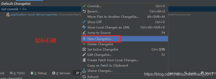 二、然后将不修要提交本地改动的代码拖进你刚才的新建的changelist中,如下图:
