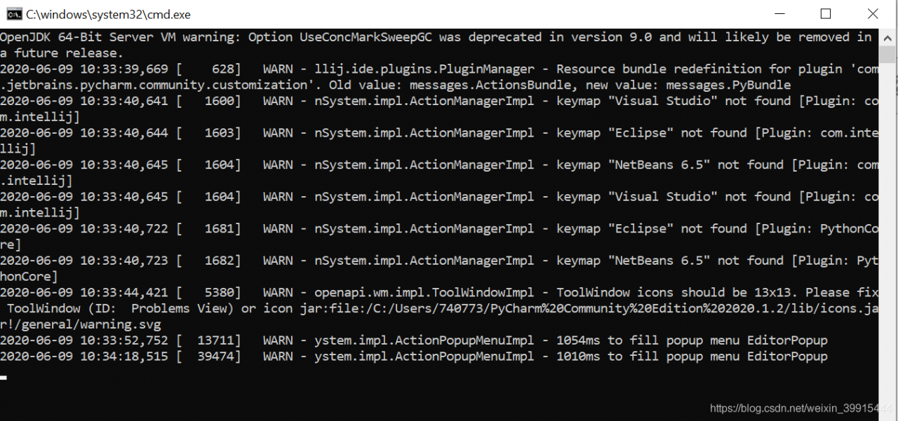 但是要保持cmd窗口打开状态,关上之后pycharm也会关闭。