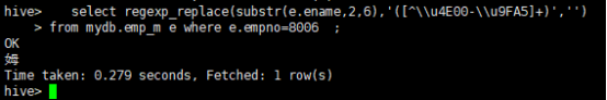 select regexp_replace(substr(e.ename,2,6),'([^\\u4E00-\\u9FA5]+)','')