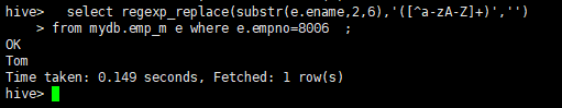 select regexp_replace(substr(e.ename,2,6),'([^a-zA-Z]+)','')