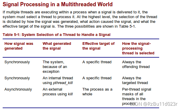 每个线程都有自己独立的signal mask,但所有线程共享进程的signal action。这意味着,你可以在线程中调用pthread_sigmask(不是sigmask)来决定本线程阻塞哪些信号。但你不能调用sigaction来指定单个线程的信号处理方式。如果在某个线程中调用了sigaction处理某个信号,那么这个进程中的未阻塞这个信号的线程在收到这个信号都会按同一种方式处理这个信号。另外,注意子线程的mask是会从主线程继承而来的。