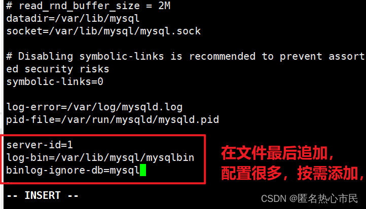 log-bin=/var/lib/mysql/mysqlbin#错误日志,默认已经开启