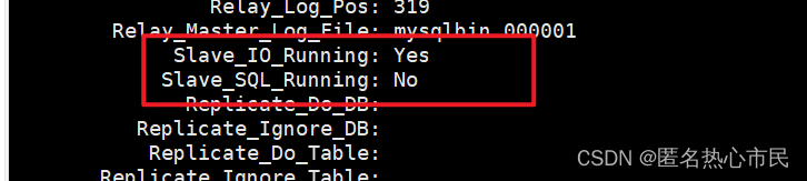 注意,重新配置前,主从数据库中的库要一致,假如主库有tbl_db从库没有,还是会报错。