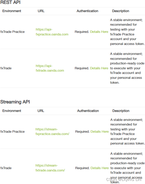| OANDA | https://developer.oanda.com/ | REST, Java, and FIX |