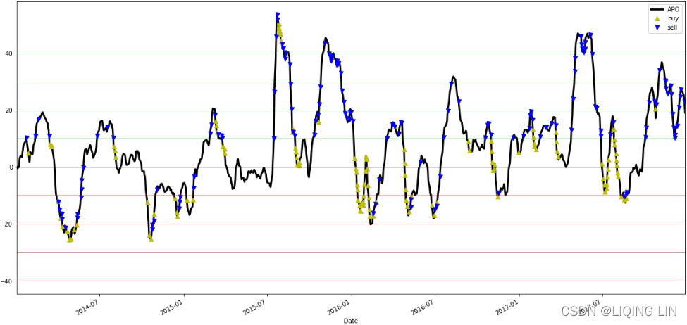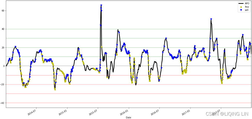 The ratio of theshort-term average price to the long-term average price is taken as the beta. When the beta rises above the value defined by buy_threshold , a buy signal is generated. When the beta falls below the value defined by sell_threshold , a sell signal is generated.