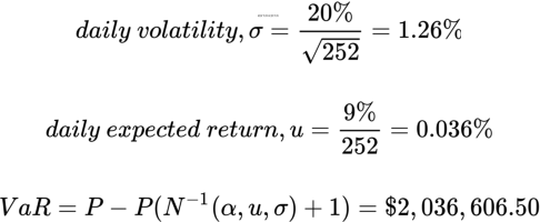 Here, P is the value of the portfolio, andis the inverse normal probability