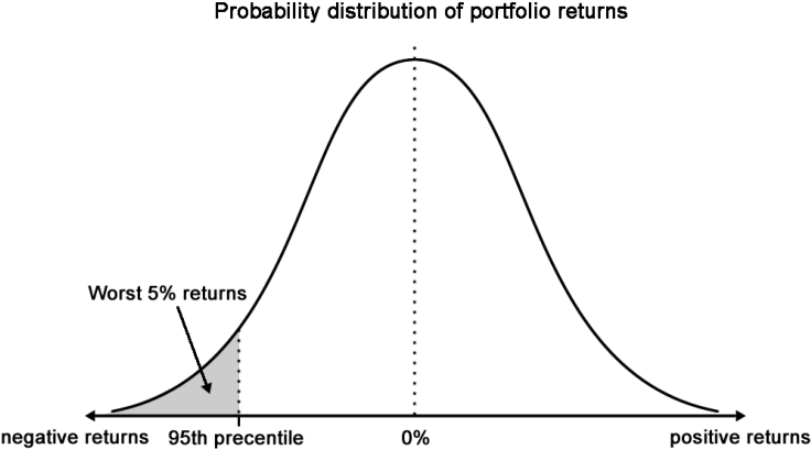 The following diagram illustrates a normally distributed portfolio returns with amean of 0%, where VaR is the loss corresponding to the 95th percentile of the distribution of portfolio returns:
