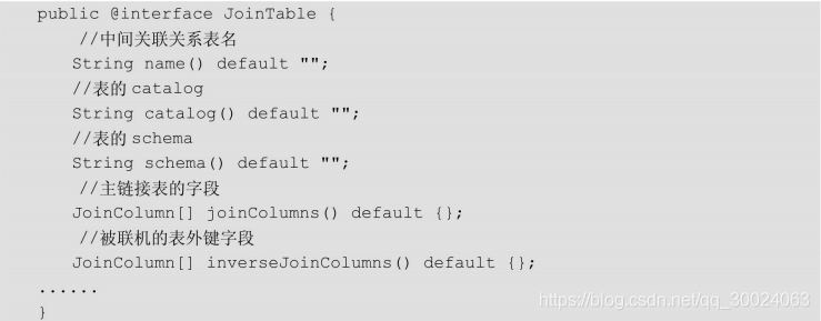 如果对象与对象之间有一个关联关系表的时候,就会用到 @JoinTable,一般和@ManyToMany一起使用