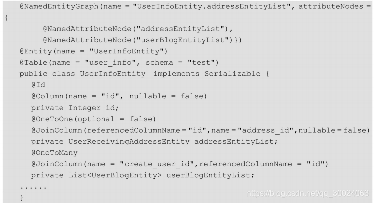 @NamedEntityGraph配置在@Entity上面,而@EntityGraph配 置在Repository的查询方法上面。我们来看一下实例。