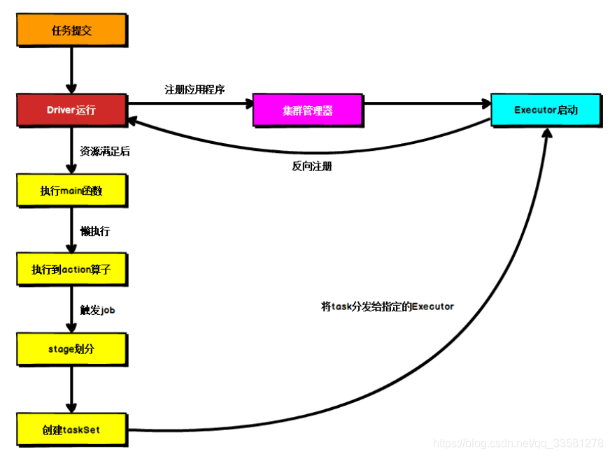 Executor:运行spark任务并返回结果,通过自身BlockManager为RDD提供存储和,并且加快RDD的计算