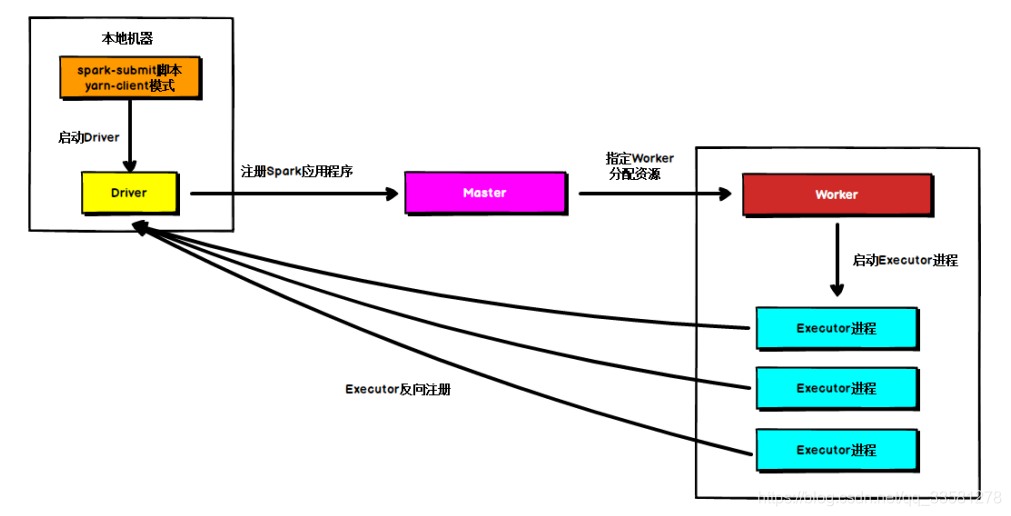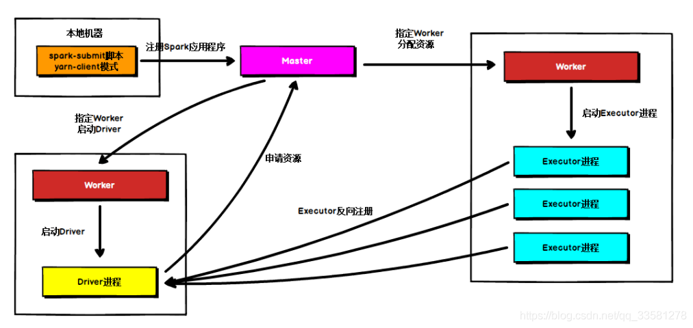 - Driver:是一个进程,我们编写的Spark应用程序就运行在Driver上,由Driver进程执行
